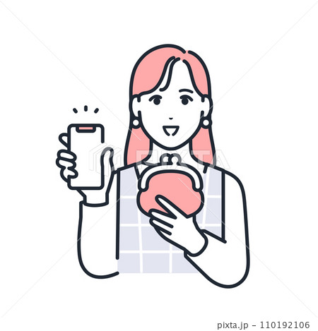スマートフォンと財布を持つおしゃれな若い女性のシンプルなベクターイラスト素材