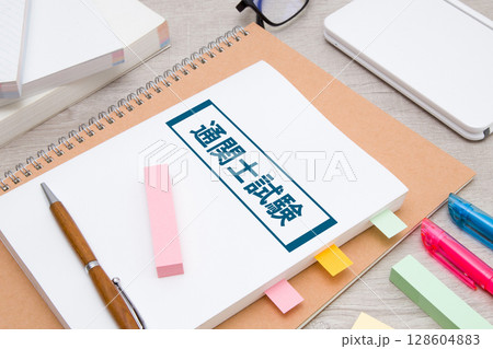 通関士の文字が入ったブロック、電卓、スマホ、ノート