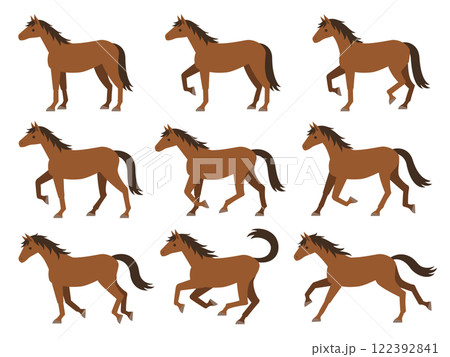馬のイラストセット(立つ・歩く・走るポーズ)