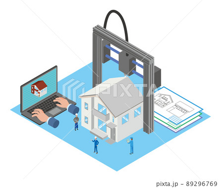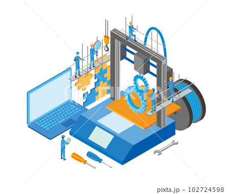 3Dプリンターのアイソメトリックイラスト