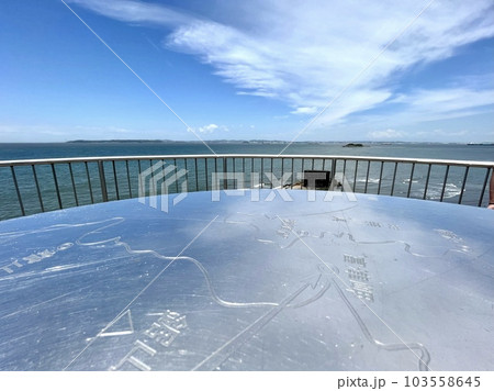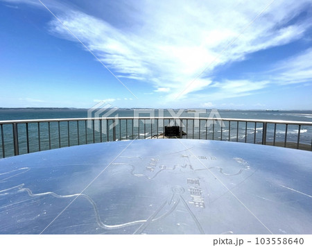富津岬_明治百年記念展望塔から眺める東京湾側_位置プレート入り