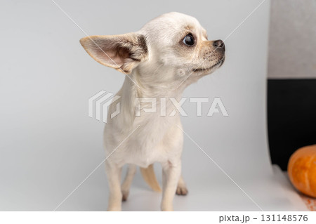 Charming black and white portrait of a playful Chihuahua relaxing indoors