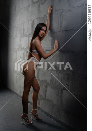 Couple enjoying intimate moments with a woman posing in lingerie indoors