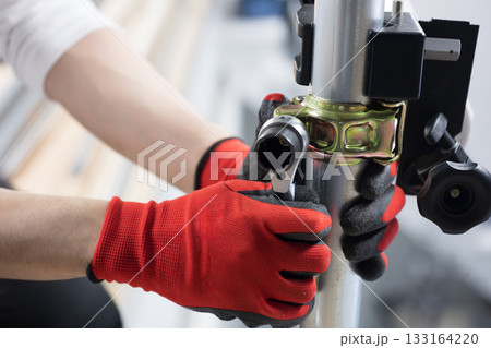 PPR pipes fusion welding, hands working closeup.