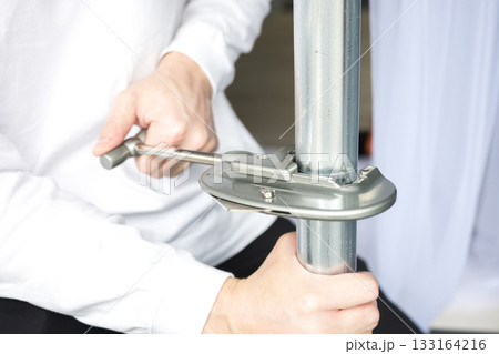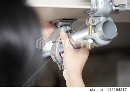 パイプを固定するクランプなどの施工作業