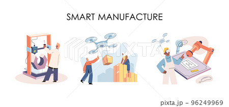 Manufacturing process, automated production line, delivery and distribution robots machinery industry 4.0