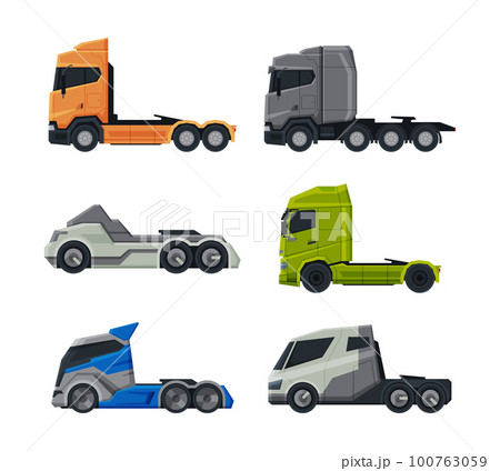 Semi Tractor Trailer Truck as Heavy-duty Towing Engine Side View Vector Set