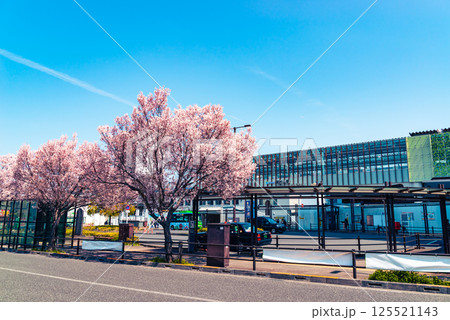 桜咲く高架化工事中の東村山駅東口駅前 2025.04 b-4 ライトカラー