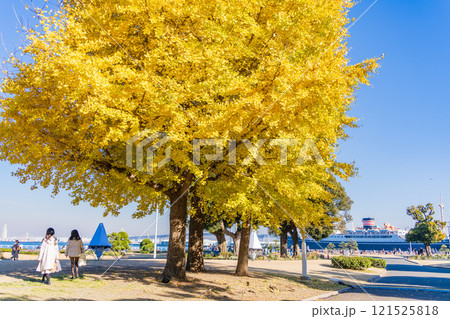 【神奈川県】横浜みなとみらい・綺麗に紅葉した山下公園の銀杏