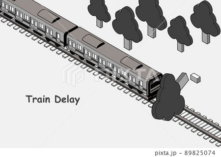 倒木により電車が止められて遅延しているアイソメトリックイラスト.