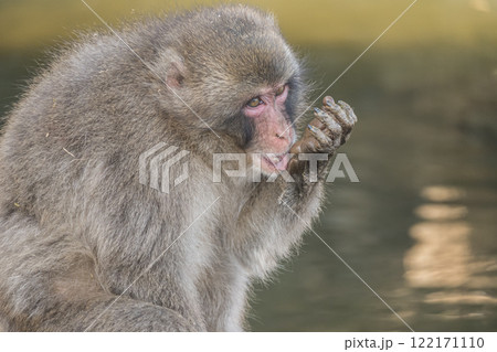 水遊びをするニホンザル 嵐山モンキーパークいわたやま