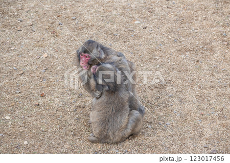 じゃれ合うニホンザルの子供 嵐山モンキーパークいわたやま