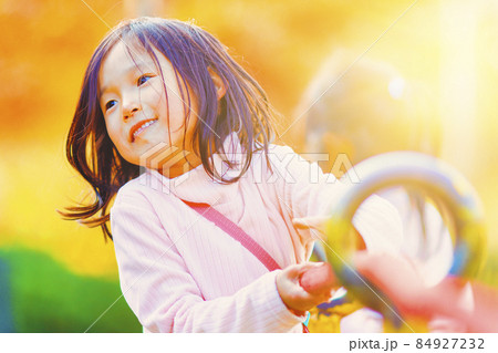公園の遊具であそぶ子供。健康、成長、元気、自由イメージ