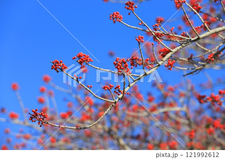 派手な赤い実を沢山つけたクロガネモチ