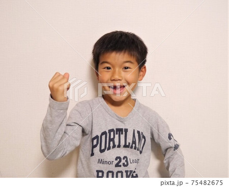 ガッツポーズする男の子