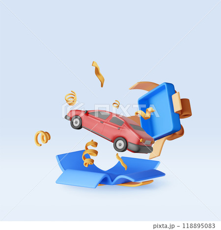 3D car flies out of gift box in confetti