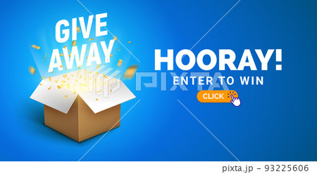 Giveaway quiz bonus announcement concept banner poster. Gift box prize bonus open box.