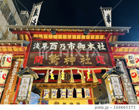 酉の市起源発祥の鷲神社_酉の市_一の酉の午前零時に始まった未明の夜空に映える鷲神社