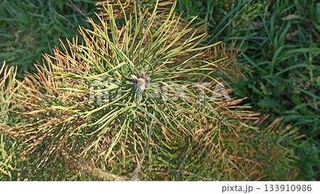 A close-up of a pine tree branch shows needles turning brown, indicating autumn s arrival. This image is great for seasonal change themes, nature projects, and educational materials.