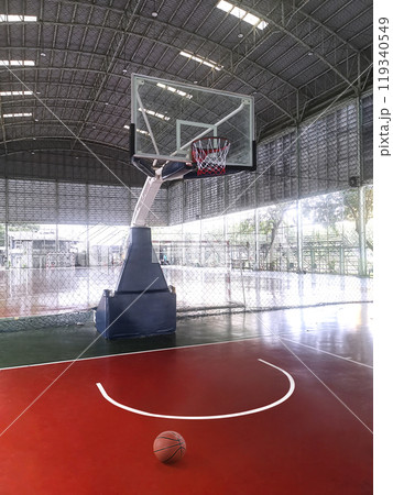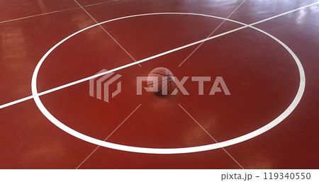 Basketball ball on indoor basketball court
