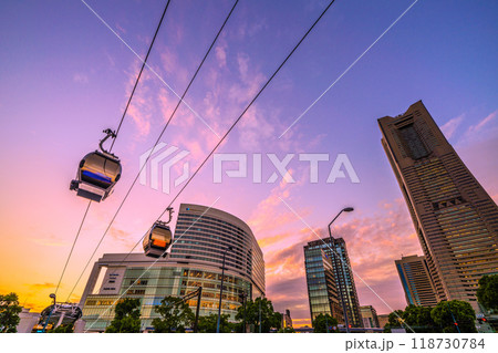 日本の横浜都市景観 10月。ロープウェイを望む。奥はYOKOHAMA AIR CABIN桜木町駅方向