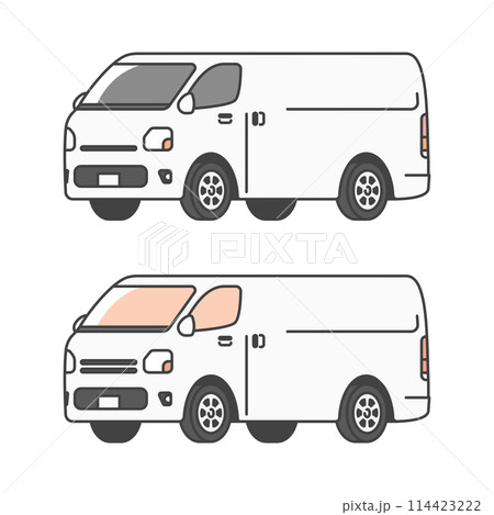 物流シリーズ:働くクルマ。多目的な商用車バン、ワンボックスカー。(カラー&モノカラーのSET)