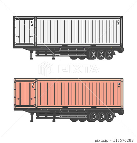 物流シリーズ:海上コンテナを運ぶ、コンテナトレーラー・大型トラック(カラー&モノカラーのSET)