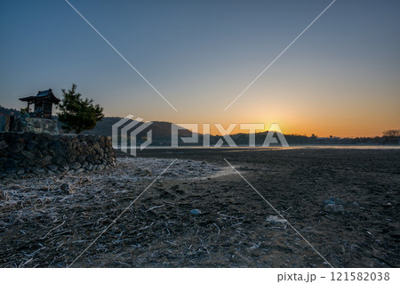 京都市右京区の冬の広沢池を早朝に撮影したもの
