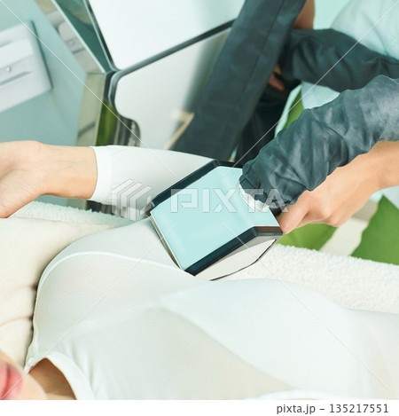 Female leg cryotherapy treatment in spa setting for skin toning and cellulite