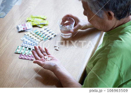 薬を飲む高齢者