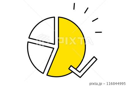 業績を示す円グラフ、ターゲット・目標達成・ゴールのビジネスアイコン