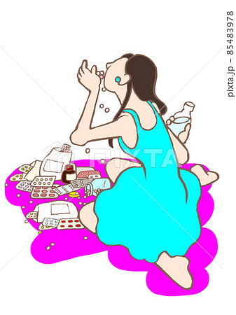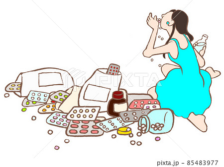 パーソナリティ障害 大量服薬する女性のイラスト シンプル