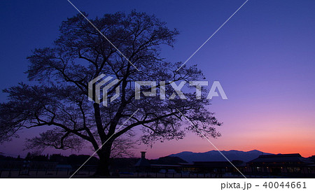 福島県 二本松市 道の駅安達の桜 万燈桜の夕景 遠くに安達太良山が見える