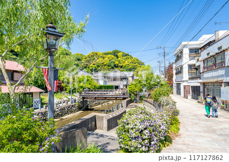 静岡県下田市 ペリーゆかりのペリーロードの平滑川とあじさい