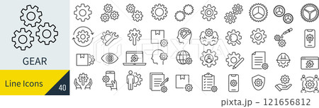ベクターでモノクロの歯車に関する線画アイコンセット