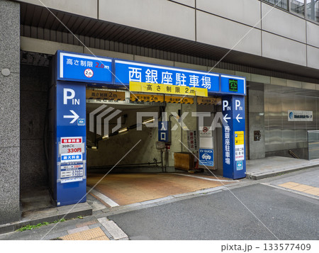 都心の地下駐車場入口(東京都中央区・西銀座駐車場)