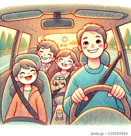 楽しかった休日に安全運転で家路についている家族