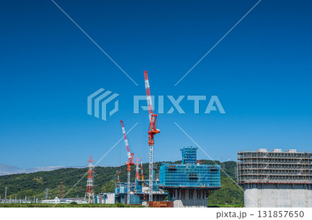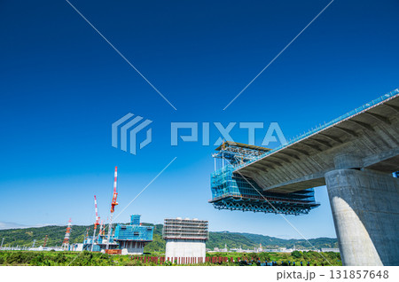 大阪府 淀川左岸河川敷 工事中の新名神高速淀川橋梁