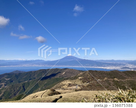 日本、冬の富士山、絶景、伊豆、箱根からの富士、達磨山展望台にて