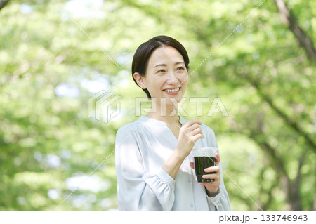 ミドルエイジの女性 ポートレート グレー背景 カメラ目線