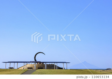 ドライブイメージ 北海道遠別町から夕暮れ時の利尻富士を望む