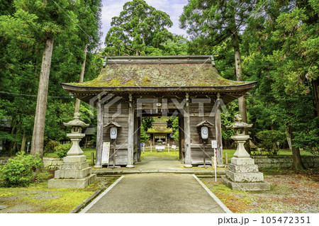 【若狭国一宮】若狭彦神社の神門と杉木立の初夏の風景2 福井県小浜市