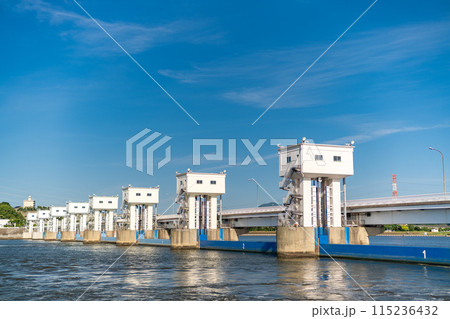遠賀川に架かる河口堰 福岡県