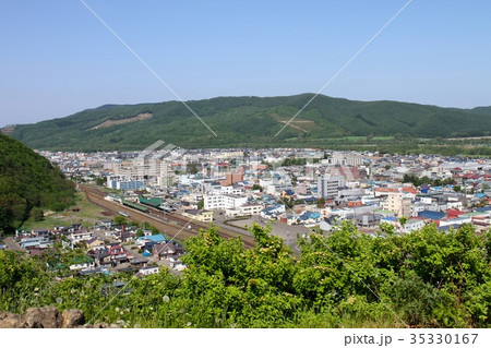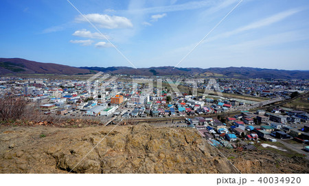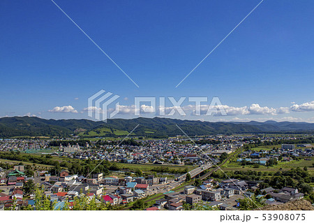 瞰望岩から眺める北海道遠軽町の展望と町の風景