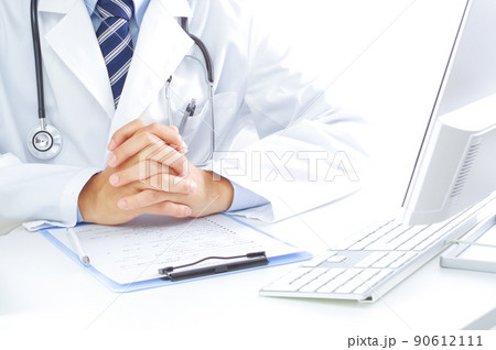 パソコンの前で診察をする医者