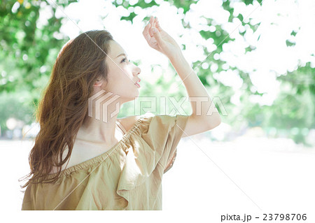 日差しをさえぎる女性 美容