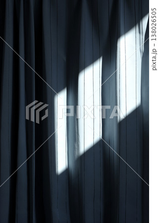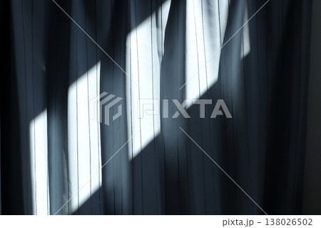 窓から入った太陽の光がカーテンに投影される