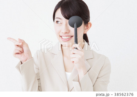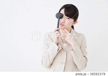 視力検査 女性 ビジネスマン 白バック