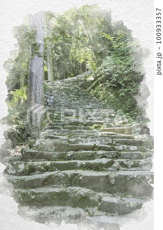 水彩画風 新宮 神倉神社 石段 和歌山県新宮市