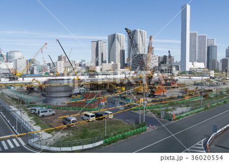 都市風景 東京 晴海フラッグ 2020東京五輪選手村 建設現場 2017年9月